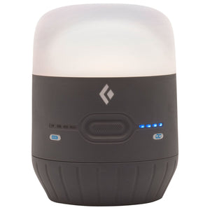 A multi-functional, ultra-bright lantern for basecamps, campgrounds and off-grid situations, the Black Diamond Moji Power Station not only provides 250 lumens of power, but it also charges handheld electronics via USB. The Moji Power Station's super-simple design features multi-power charging capabilities and runs off of direct AC (with adapter, not included), an enclosed rechargeable battery or standard AA alkalines. The Moji Power Station's portable power functionality also charges out via USB to keep cameras, phones and other small handheld electronics going strong while roaming far from home. A single power switch dims the light for optimal brightness, and a collapsible double-hook loop allows for easy hanging.
