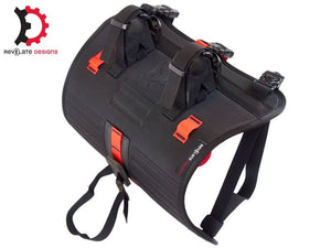 Relying on a flexible connection, the Harness is crash-proof as there are no rigid connections to fail if you wreck in the middle of nowhere. Our 3 strap design allows for balanced and easy bag mounting - center the load and fasten the middle strap first, then the outer 2.
