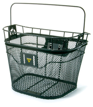 A sturdy handlebar-mounted metal basket for shopping trips and quick jaunts around town.