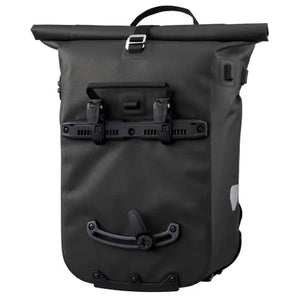 Backpack or bike bag? With the versatile and innovative Vario, you no longer have to ask yourself this question. The Vario transforms from a backpack to a bike bag faster than ever before. On one side is one of our Quick-Lock fastening systems, and on the other, the padded carrying system with a chest strap and ergonomic shoulder straps. The flap with its integrated pocket covers the side that isn't needed. You can also stow equipment you need quick access to in the zippered outer pocket. Everything else you need is accessible via the practical and proven roll-top closure, such as your laptop, which fits in the designated padded compartment. The waterproof hybrid is PVC-free and sustainably manufactured in Germany.