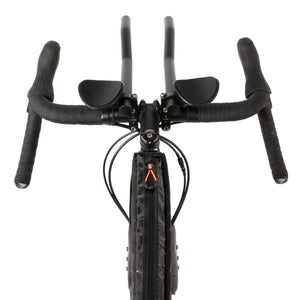 Built to be practical and functional, the bag is held firmly in place with a rubberised velcro strap and an adjustable MOLLE hypalon fitting, which allows the bag to function seamlessly with all Restrap Frame Bags. A rigid internal plastic structure keeps the bag upright and stable and the universal headset fitting accommodates all headsets, including bikes with a low stack height. A stretch mesh side pocket provides storage for nutrition, wrappers and other on-the-fly essentials.