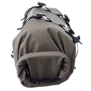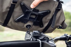 The Handlebar-Pack Flex is a waterproof luggage roll for bikepacking, which impresses above all with its variablemounting options on the handlebars. The handlebar bag with a volume of 15 L is ideal for carrying a sleeping bagand sleeping mat and can be quickly attached to the handlebar and the QR mounting set (not included) thanks tothe adapter plate on the back. Once you have reached your destination, simply click it out of the mounting set totake it with you.