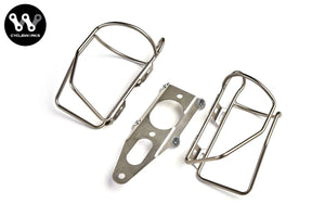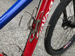 The Water Bottle Cage Double Adaptor is a side-by-side bottle mount for maximizing your on-bike water storage. We can't say that they will make you faster, but they do keep your bottles within reach, and they look cool.